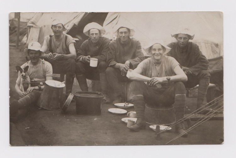 These soldiers embarked for the trenches of France in June 1916. The two soldiers in the centre were both killed within a month of landing. JEMc is at the right rear. His friend, later (machine gunner) Sgt John Marshall MM, in front of him, survived WW1.