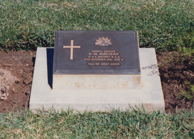 Gunner Douglas McElroy Maclean (son of above) Anti-Aircraft Gunner accidently killed on active service, Darwin 1941, aged 17 years.