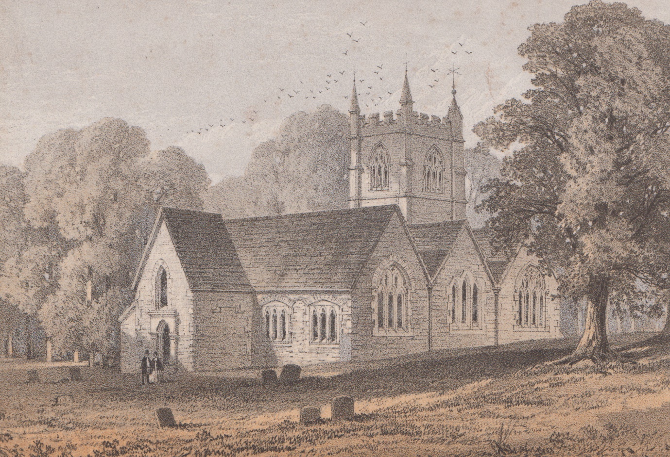 Lithograph of “St Prats” Anglican Church, Parish of Blisland, Cornwall